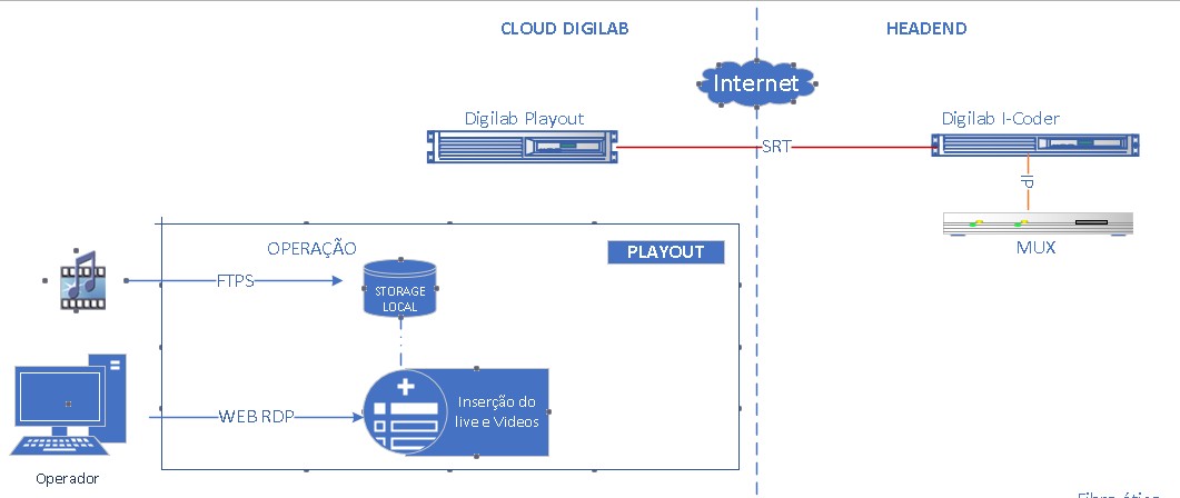 Neste cenário de uso, ilustrarei como realizar a entrega da saída do Digilab Playout para qualquer headend utilizando o protocolo SRT e o Digilab I-coder.P