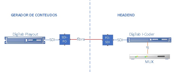 O Digilab I-coder é utilizado para realizar a recepção e conversão do sinal de vídeo broadcast vindo por fibra/SDI para TS desde o cliente para Headend.